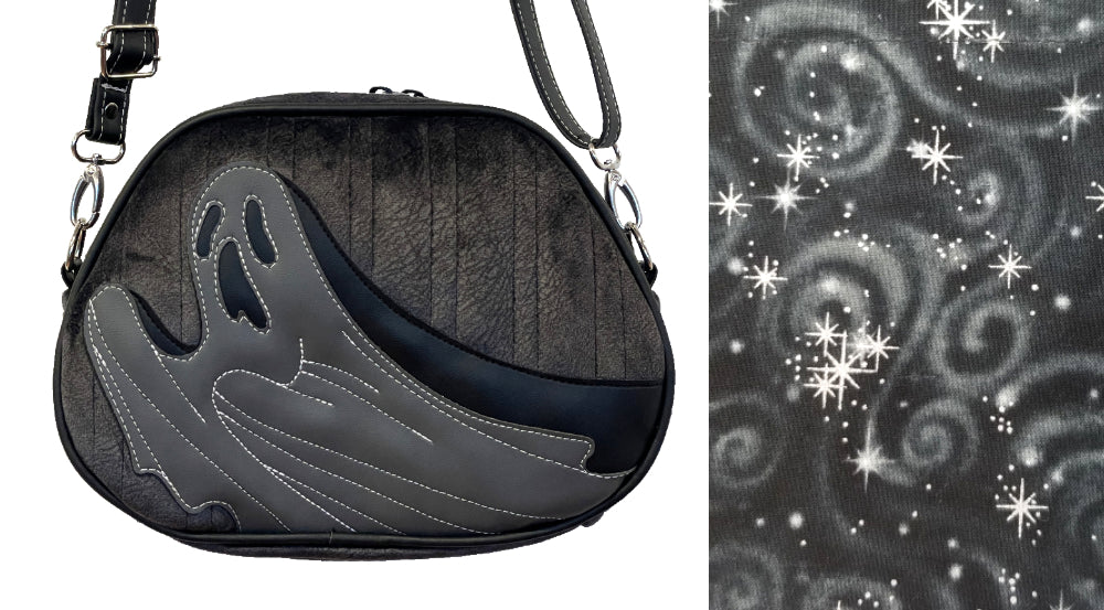 B-grade notes: Ghost appliqué is further left than originally designed, and there is some glue residue on the ghost pieces. All B-grade bags are sold as-is. Photos are of only 1 example, and may not represent all bags exactly. If you have questions, please reach out via our chat feature or via instagram for the quickest reply. No cart holds.