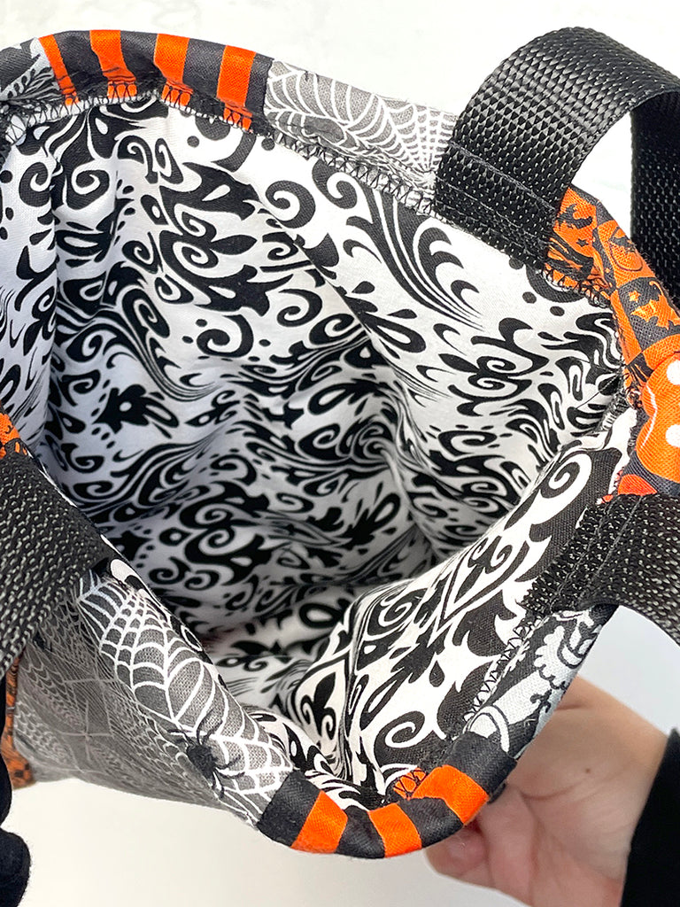 These delightful quilted totes are just the right size to carry your essentials in Halloween style!